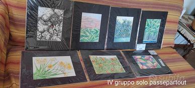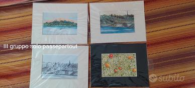 Dipinti a china con passpartout e cornice