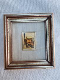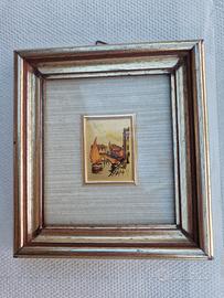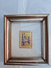 trittico di quadretti dipinti a mano su foglia d'oro. misure quadretto 13 x 12. dipinto 3 x 4.