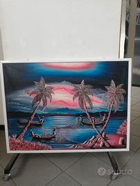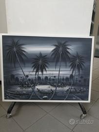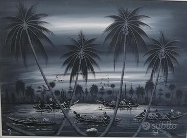 Coppia di dipinti a olio su tela di paesaggi tropicali, con cornice in legno bianco, misure 100x70 Costo 50 euro l'uno