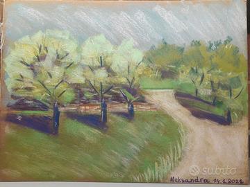 Splendidi dipinti originali realizzato a mano dall'artista Shynar -Alesksandra Kiekbaeva, pittrice di origine kazaka oggi attiva in Italia. L’opera fonde l’estetica raffinata delle radici centro-asiatiche con la luce e lo stile appresi durante il suo percorso artistico in Italia. CARATTERISTICHE DELLE OPERE: •Tecnica: Pastelli, acquarello, matite colorate, olio su tela. •Dimensioni: Varie. 33X24cm, 24X 30cm, 50X35 cm, 14x11cm, 50X32cm. •Soggetti: Paesaggi, composizione floreali, nature morte, animali (in genere uccelli). •Stile: Un’opera vibrante, caratterizzata da un uso sapiente del colore che donano profondità e carattere a qualsiasi ambiente (soggiorno, studio o camera da letto). DETTAGLI AGGIUNTIVI: •Stato: Ottimo stato di conservazione. •Firma: Firmato a mano dall’artista. •Montaggio: Il quadro è venduto senza cornice, per chi vuole forniamo la cornice. PERCHÉ ACQUISTARLO: Sostenere un'artista emergente internazionale significa investire in un pezzo unico che porta con sé una storia di integrazione culturale. Perfetto per chi cerca un elemento d'arredo esclusivo che non sia una stampa industriale. SPEDIZIONE E PAGAMENTO: •Spedizione disponibile in tutta Italia con imballaggio per garantire l'integrità dell'opera. 25€a pezzo trattabili.
