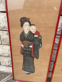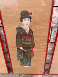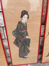 Raffinata serie di 4 dipinti giapponesi su seta – Primo periodo Shōwa (anni ’20–’30)