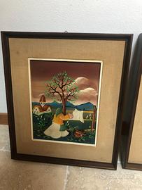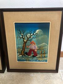 Splendida coppia di quadri firmati dal pittore Pedro Corsovic, realizzati con la tipica tecnica e lo stile naïf che contraddistingue l’artista.