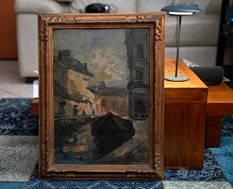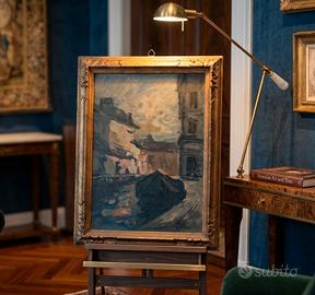 Quadro a firma Achille Cattaneo in cornice dorata. Si tratta del "Tombone di San Marco", tema a lui molto caro, che venne riprodotto e sviluppato anche in altre tele dall'artista. Ottime condizioni, cornice coeva con minime abrasioni. non spedisco Margine di trattativa. N.B. Le prime due foto suggeriscono solo un contesto di presentazione dell'opera, mentre le foto effettive dell'opera, cosi come la riceverete, sono le successive.