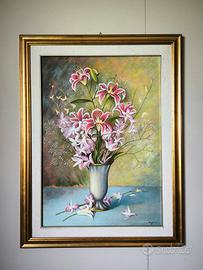 Se cerchi un quadro elegante che faccia davvero la differenza in casa, questo è quello giusto. Dipinto a olio firmato Bozzoli (1989) con raffinata composizione floreale (lilium e orchidee), completo di cornice e subito pronto da appendere. ✔ Dimensioni importanti: 50x70 cm ✔ Firma fronte + retro ✔ Etichetta originale artista ✔ Ottimo stato Non è la solita stampa: è un vero dipinto decorativo anni ’80, perfetto per dare carattere a soggiorno, studio o ingresso. 👉 Pezzo unico, non replicabile 👉 Ottimo anche come regalo elegante 💬 Prezzo trattabile ma senza perdite di tempo 📦 ririro, a mano o spedizione a cura dell acquirente