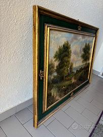 Dipinto a olio originale su tela, firmato in basso a destra, raffigurante paesaggio naturale. Opera di gusto classico, fine
