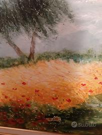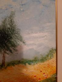 DIPINTO AD OLIO SU TELA, TITOLO : " DUE ALBERI " MISURE 50 X 60 . OFFERTA LIBERA .