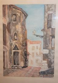 Acquerello raffigurante scorcio di un vicolo di un paesino del Sud Italia dell'artista Alfredo Spagnuolo.