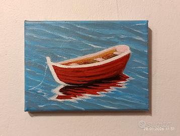 Dipinto acrilico, piccolo quadro con una barca.