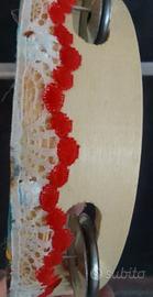 Dipinto acrilico su tamburella di legno paesaggio posillipo napoli nuova diametro 16,5 cm e 4 cm di spessore