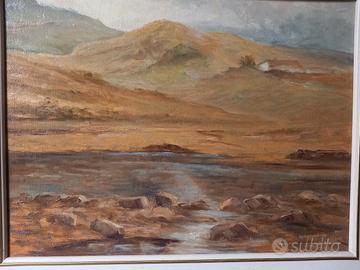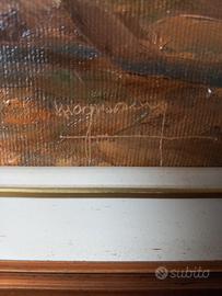 Dipinto ad olio raffigurante un paesaggio, firmato Magnani.