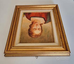 Dipinto ad olio su lastra di rame con ritratto della Madonna, realizzato dal noto pittore tedesco Leopold Reiser Vaney (1921 – 2002), ispirato al famoso dipinto “Madonna del Cardellino” di Raffaele Sanzio Dimensioni del dipinto e del quadro compresa cornice, rispettivamente pari a 23 x 29 cm e 40 x 46 cm; spessore cornice 5 cm.