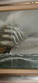 Dipinto ad olio con oggetti veliero e mare in burrasca (40x50x70)di Renato LONGANESI artista nato nel 1931.