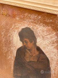 Antico ritratto di donna vicino ad ina poltrona Tecnica mista Ci sono appinti che non riesto a leggere Probabilmente uno studio