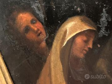 Il rame conferisce particolare brillantezza e profondità alla pittura, valorizzando i passaggi di luce e le espressioni dolenti dei personaggi. L’opera conserva una patina antica che ne testimonia l’autenticità e il fascino del tempo.