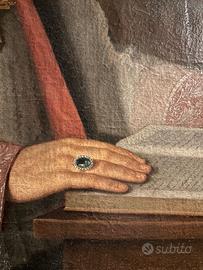 Scuola del sec XVIII ritratto di vescovo attribuito alla scuola del Longhi così come da cartiglio su retro tela. Misura cm 100x75 con cadute di colore nelle parti finali e telaio leggermente imbarcato. Di grande qualità ed esecuzione pittorica