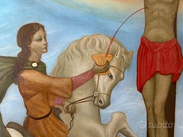 "Cristo con Giuseppe D'Arimatea e Longino", Dipinto tempera all'uovo e tempera grassa su tavola, Dimensioni 88,5 x 55, 5, anno 2002. Autori: Alex Bonatti (interpretazione pittorica), Enzo N. Terzano (progettazione iconografica e simbolica). Cornice artigianale in foglia di ottone. Colori minerali: azzurrite, malachite, cinabro e foglia d'oro e d'argento. NOTA: per una descrizione critica e simbolica scrivere al venditore.