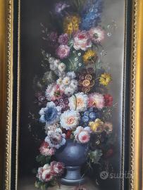 Mastodontico e bellissimo quadro olio su tela con rappresentati numerosissimi e diversificati fiori. Dipinto firmato di dimensioni uniche e importanti: 170x80 cm. Molto bella anche la cornice.