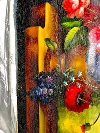 Dipinto con fiori ispirazione quadri del 1600 olio su tela cm 52x62 (spedizione in rotolo)