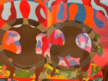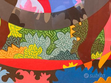 Il dipinto è una composizione estremamente vivace, dinamica e simbolica, con tratti che riflettono elementi dell’arte pop, psichedelica e impegno sociale coerente con lo stile di Julián Pacheco durante il suo periodo italiano.