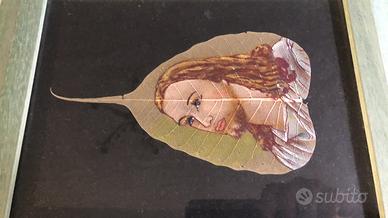 Quadretto con dipinto di Cristo su foglia di ficus religiosa. Dimensioni quadro 30x25 cm Consegna a mano ad Avellino o spedizione a vostro carico
