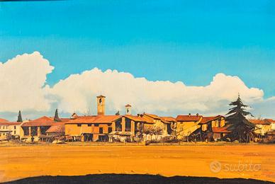 Dipinto olio su tela yuta 80 cm x 120 datato e firmato 26/8/1982, rappresenta una veduta da zona "frera" di Viguzzolo Al e il caldo dell' estate in pianura del pittore- restauratore Cavaleri Ilario nato Riace RC nel 1956 che ha vissuto per trenta anni in questo paese del Piemonte.