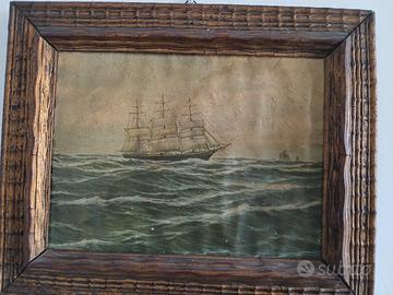 Quadretto con veliero di inizio 900 con cornice antica. Molto decorativo ed espressivo.