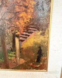 Il dipinto raffigura una scena paesaggistica con alberi e architetture, tipico dello stile impressionista o del Novecento italiano, il pittore è Antonio Mario Aspettati (pittore italiano nato a Firenze nel 1880 e morto nel 1949) || timbro di autenticità e di provenienza sul retro. • Il timbro riporta il nome Giuseppe Giannini, una storica bottega di legatoria e articoli in carta a Firenze. • L'indirizzo indicato è Via Tornabuoni, una nota via dello shopping di lusso a Firenze. • La dicitura Firenze conferma la provenienza geografica dell'oggetto . SOLO CONSEGNA A MANO