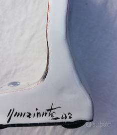 Pezzo unico, ceramica pubblicitaria del maestro Antonio Nunziante, dipinta in originale, prodotta per il Gruppo Basilea. Firmata sul lato con indicato l'anno di realizzazione. non si tratta di un multiplo. Nella sua scatola originale.