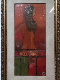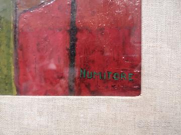 Dipinto di NUMITORE. Figura femminile di spalle Olio su masonite, cm 30x15 circa