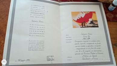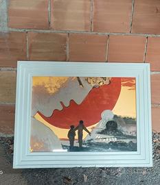Quadro del famoso pittore Salvatore Fiume. È rimasto conservato in magazzino e non esposto. Ho allegato foto del certificato di garanzia di autenticità e provenienza. Nel certificato , come da foto, vi sono descritte le caratteristiche dell' opera: trattasi di una serigrafia originale su fondo acciaio ricoperto in oro fino a 24 carati cm 50x70 . Come nuovo.