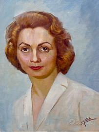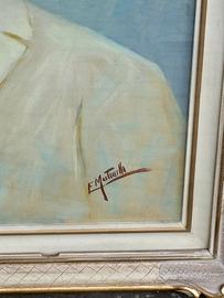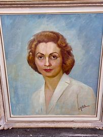 Dipinto ad olio su tela, ritratto di dama roveretana, anni circa 1960, entro bella cornice laccata. In ottime condizioni. Misure dipinto cm 49x59, misura cornice cm 66x76. A firma “Elio Martinelli”.