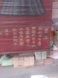 Vecchio dipinto giapponese ( verosimilmente copia di un antico ritratto ) su tela misure : cm 88 X 230 arrotolato su sostegno in legno. Firmato ( ma ignoro il valore dell'autore )