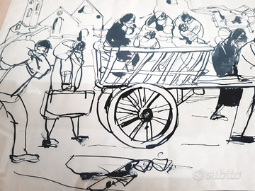 Pregevole e rara opera del celebre pittore pugliese Giovanni Consolazione (Gravina in Puglia 1908 - Roma 1964). China su carta, cm 24x34,5. Cornice lignea originale cm 32,5x43.