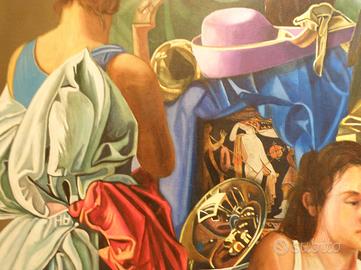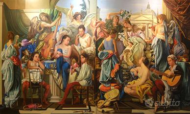 vendo grandissimo dipinto a mano su tela cm. 240 H x 400 L (due tele cm. 240Hx200L) "Allegoria delle Arti" (danza, pittura, scultura e musica in raffigurazione allegorica). Ideale per albergo hotel, ristorante, sala , ingresso villa. Visionabile a Bologna zona centro. Per informazioni scrivere in privato
