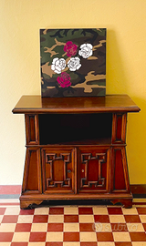 Rose su grafica “camo” mimeticomilitare. Un contrasto visivo di estetiche opposte come la pace e la guerra, l’odio e l’amore, creativamente ben espresso dal nome “Guns ’n’ Roses”, anche in riferimento all’omonima rock band. Tecnica mista su tela, 45x45cm x 1 kg, 2011. Spedizione in tutta Italia con tracking number e assicurazione. Breve bio di Fabrizio Braghieri (da Glauco Cavaciuti): L'attività artistica ed espositiva di Bixio Braghieri inizia nel 1992 con la collettiva "Arte e Architettura" presso il Politecnico di Milano. Nel 2006 espone al Palazzo della Triennale di Milano, quindi alla New York Photo Fair e a "Draws” Biennale di disegno di Londra. Nel 2009 prende parte alla collettiva "L'una e l'altra: the art side of the moon", dedicata allo sbarco dell'uomo sulla Luna, curata dalla Galleria Colossi Arte Contemporanea di Brescia. Nel 2010, Bixio espone a New York come parte della rassegna "Studio Maffei Milano-New York". Nel 2011 rappresenta l'Italia nella mostra itinerante "Dadaumpop" organizzata dal Ministero degli Esteri, che tocca Mumbai, New Delhi e Calcutta. Nel 2012, tiene una mostra al Museo Poldi Pezzoli di Milano, mentre nel 2014 presenta la personale "Paper People" presso la Boutique Fabriano di Roma. Nel 2016 presso Glauco Cavaciuti a Milano allestisce la personale “Have a Fab trip” e "Ciao Milano" nel 2023.