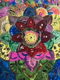 Dipinto mandala fatto con linee gia messe nella tela , ma poi fatte a modo mio Cm38x38