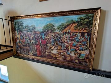 bellissimo dipinto su tela rappresenta un mercato africano il dipinto è originale proveniente dal Kenya misura cm.235x123