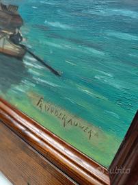 Dipinto Olio Fr. Van Der Auwera-Marina al Tramonto