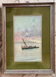 Dipinto olio su tavola con barche a vela