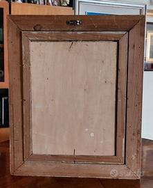 Vecchio dipinto olio su tavoletta firmato in basso a destra. Il dipinto è di ottima qualità ed è impreziosito da una bellissima cornice artigianale in legno intarsiato, le misure sono 30x40 e con la bellissima cornice 47x57.