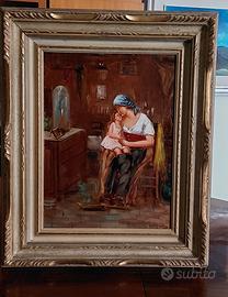 Dipinto olio su tavoletta "Coccole "