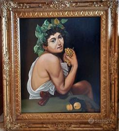 COPIA DEL BACCO MALATO DI CARAVAGGIO OLIO SU TELA 50X60 COMPRRESO CONICE IN ORO ANTICO MISURA 77X67 AUTORE D'AMBROSIO PIETRO