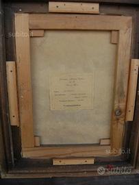Vendo olio su tela firmato A. Brioschi intitolato Colline lombarde completo di passepartout, vetro e cornice a mano in oro zecchino con sigillo in ceralacca. Dimensioni della tela 30x40, dimensioni della cornice 44x54. Sul retro della tela è incollato il certificato di autenticità.