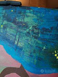 Il dipinto raffigura il corpo di una donna sospeso, come se fluttuasse in un mare oscuro attraversato da piccoli punti di luce. La figura è priva di testa, scelta simbolica che rappresenta l’incertezza e il timore di essere osservati nel proprio momento più fragile. Il contrasto tra i toni caldi del corpo e lo sfondo freddo e profondo crea un forte impatto visivo ed emotivo. Dipinto originale realizzato a mano con tecnica a olio su tela. Pezzo unico, non riproducibile. Perfetto per arredare ambienti moderni, camera da letto, studio o per chi cerca un’opera con significato e personalità. Dimensioni: [inserisci qui] Condizioni: ottime