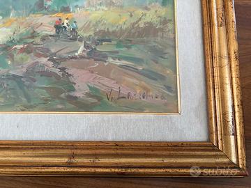 Dipinto olio su tela paesaggio rurale - firmato.