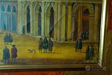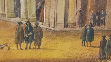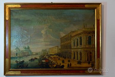 Riproduzione olio su tela opera "Riva degli Schiavoni verso la Salute " di Luca Carlevarijs periodo 1690-1720 misura 100x70 (114x84 cornice).