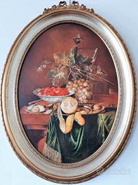 Dipinto ovale fatto a mano raffigurante frutti completo di cornice in legno color oro misura altezza cm88 larghezza cm65