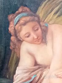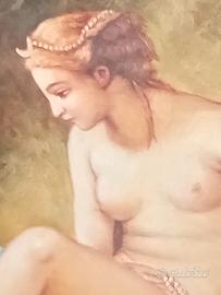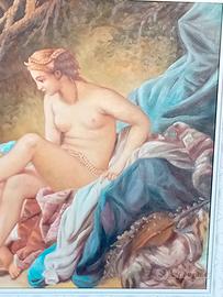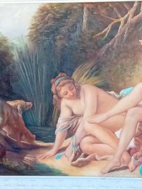 dipinto a olio su tela di recente fattura con bella cornice in legno laccata bianco seta ,rappresenta " Diana al bagno"