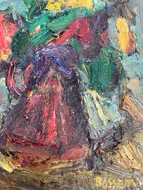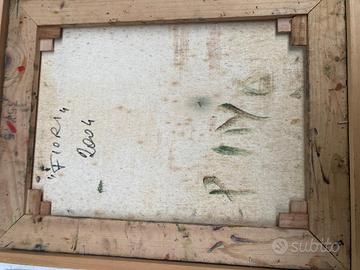 Opera d'arte del maestro Pino Bassetto realizzata nel 1941 Titolo: "Fiori" Olio su tela 35x45 cm Bio Pino Bassetto nasce a Vicenza nel 1941. Compie gli studi artistici presso lIstituto P. Selvatico di Padova e frequenta il corso di disegno alla Scuola dArte e Mestieri di Vicenza. Inizia a dipingere sotto la guida del maestro Otello De Maria, al Circolo della Soffitta, nella stessa città. Attivo dal 1978 è presente a significative rassegne darte nazionali ed internazionali, dove ottiene numerosi premi e riconoscimenti. Si possono ricordare le mostre personali: Chiesa di San Giacomo a Vicenza (Assessorato alla Cultura), 1989, Castello Inferiore di Marostica (Assessorato Cultura), 2001. Vince premi a Reggio Calabria, 1978; Concorso di Monteforte d’Alpone S. Bonifacio Verona, 1980; Concorso Internazionale Arcole Verona, 1980; 5° Concorso Nazionale Padova, 1981; Concorso Nazionale Bari, 1986; Premio Arte Milano, 1988; Concorso Internazionale di Pittura Sanremo segnalato , 2002; Collettiva Arte Sacra Beato Angelico Vicenza, 2003. Esegue nel 1998, su incarico, il ritratto di San Giuseppe Maria Tomasi di Lampedusa, ora esposto nella Chiesa dei Padri Teatini di S. Gaetano a Vicenza. Si sono interessati, fra gli altri, della sua opera i critici: Bruno Chiozzi, Fiorenza Conti, Anna DellAngelo, Piero De Pellegrini, Maria Lucia Ferraguti, Salvatore Maugeri, Tullio Motterle, Franco Pepe, Neri Pozza, Marica Rossi, Maria Luisa Vigorelli.