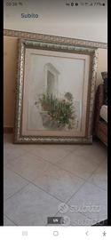 Quadro antico balcone in fiore Quadro antico dipinto a ad olio su tela finestra anni 90'.Caratteristiche